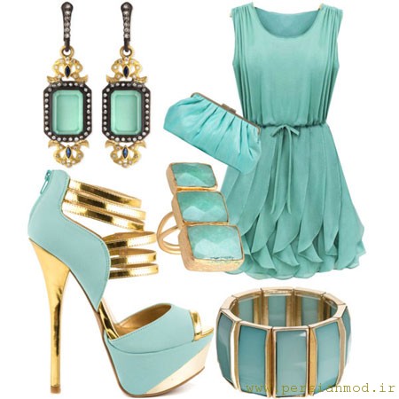 ست لباس و کیف و کفش و جواهرات ست لباس فیروزه ای ست لباس و کیف و کفش ست های زیا و شیک